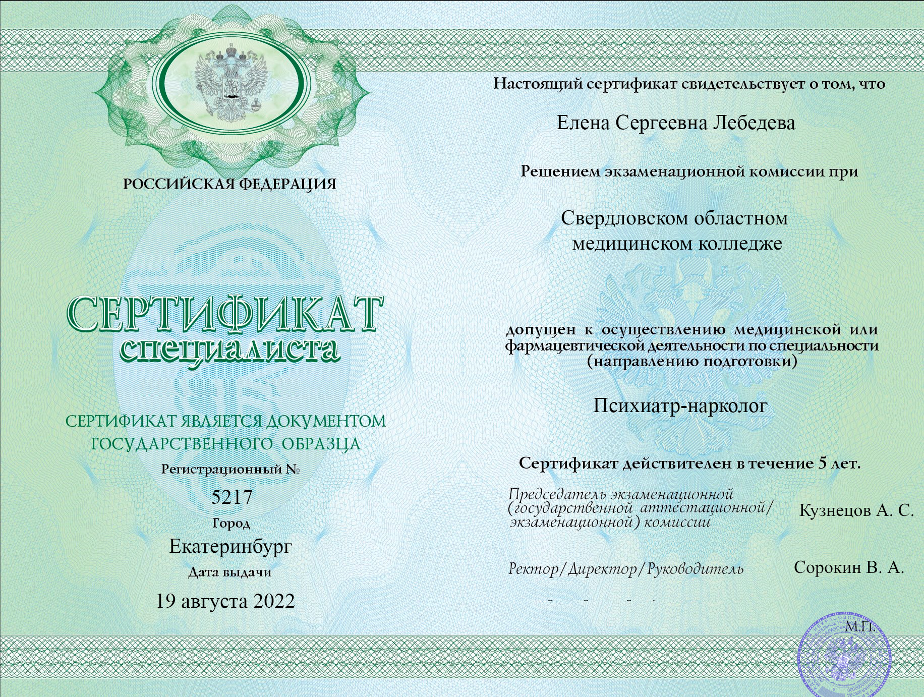 Елена Сергеевна Лебедева врач нарколог клиники доктора Стукаловой в Ульяновске